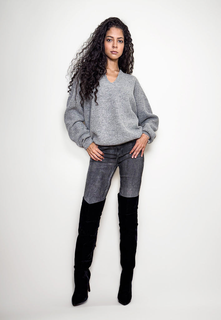 A timeless V-neck wool sweater with a soft balloon shape. The CODEMH Heidi Sweater combines effortless comfort with refined versatility for every moment.